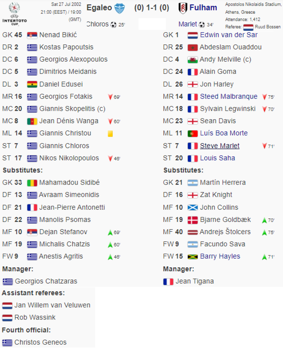 «Эгалео» Эгалео - «Фулхэм» Лондон - 1:1