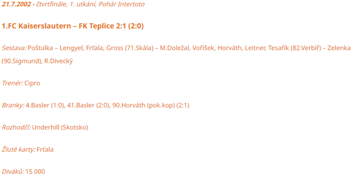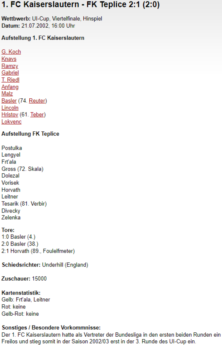 «1. ФК Кайзерслаутерн» Кайзерслаутерн - «Теплице» Теплице - 2:1
