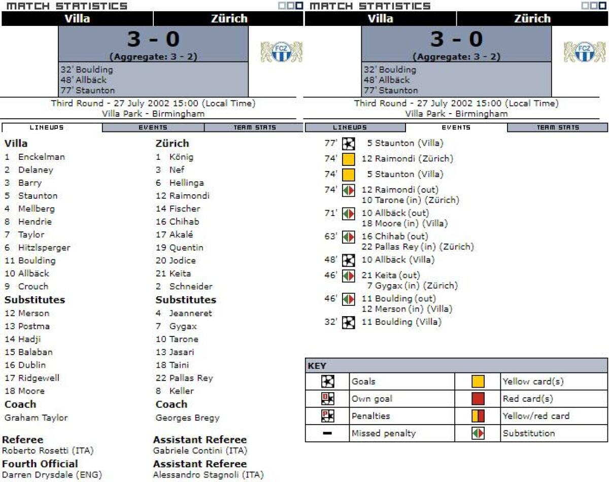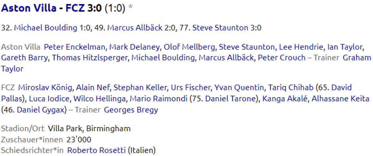«Астон Вилла» Бирмингем - «Цюрих» Цюрих - 3:0