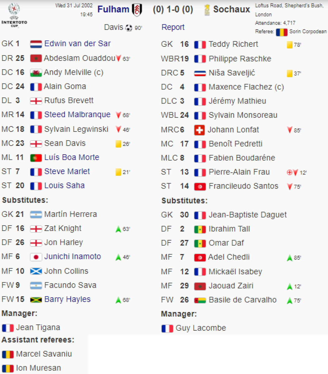 «Фулхэм» Лондон - «Сошо Монбельяр» Монбельяр - 1:0