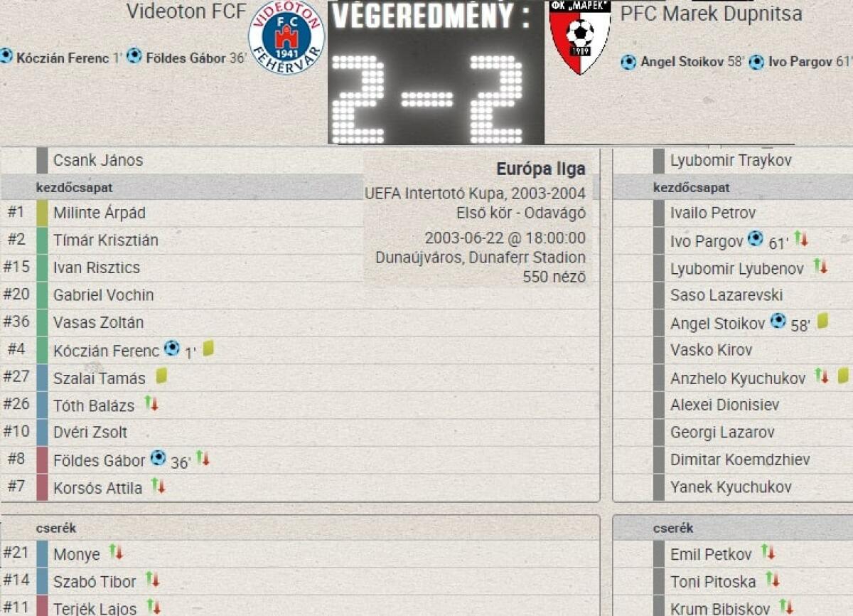 «Видеотон» Секешфехервар - «Марек» Дупница - 2:2