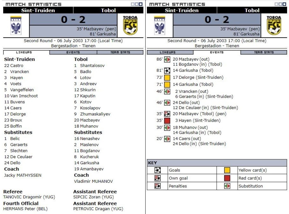 «Синт-Трёйден» Синт-Трёйден - «Тобол» Кустанай - 0:2