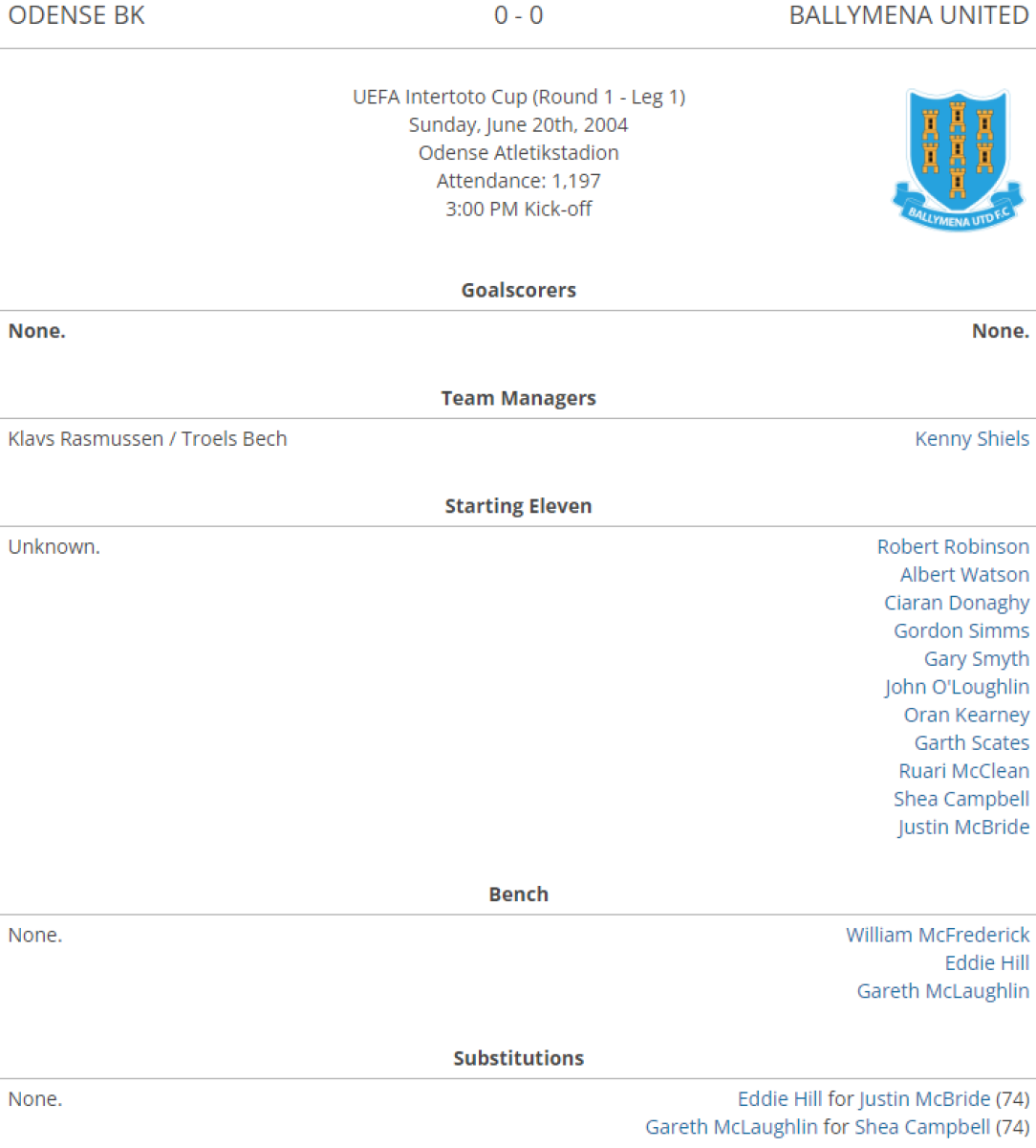 «Оденсе БК» Оденсе - «Баллимена Юнайтед» Баллимена - 0:0