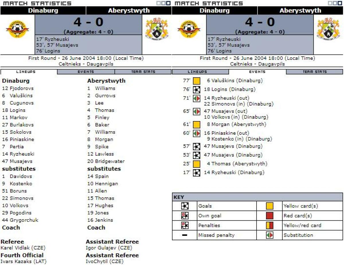 «Динабург» Даугавпилс - «Аберистуит Таун» Аберистуит - 4:0