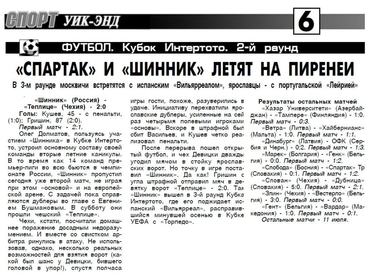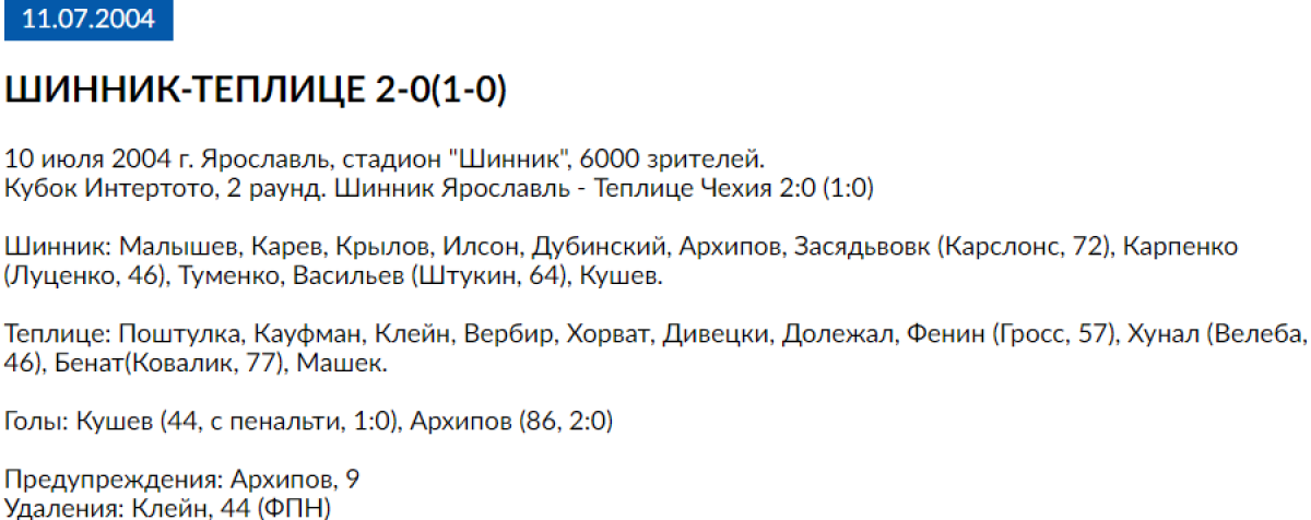 «Шинник» Ярославль - «Теплице» Теплице - 2:0