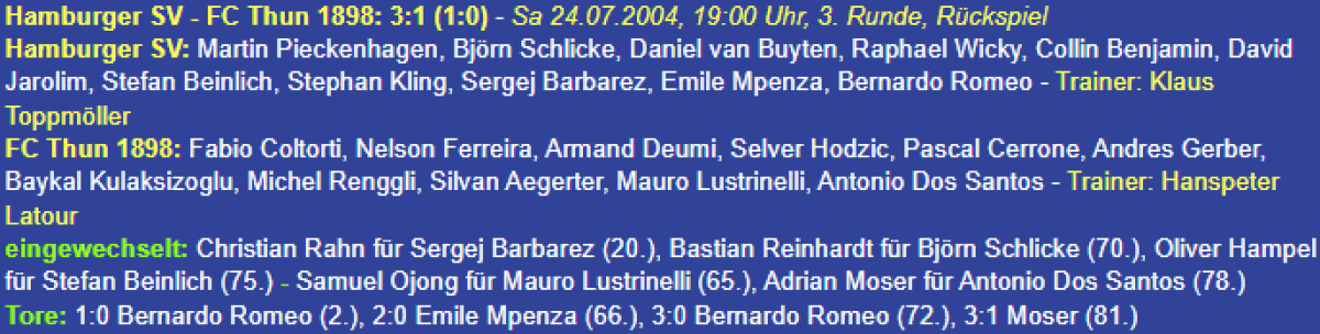 «Гамбургер» Гамбург - «Тун» Тун - 3:1