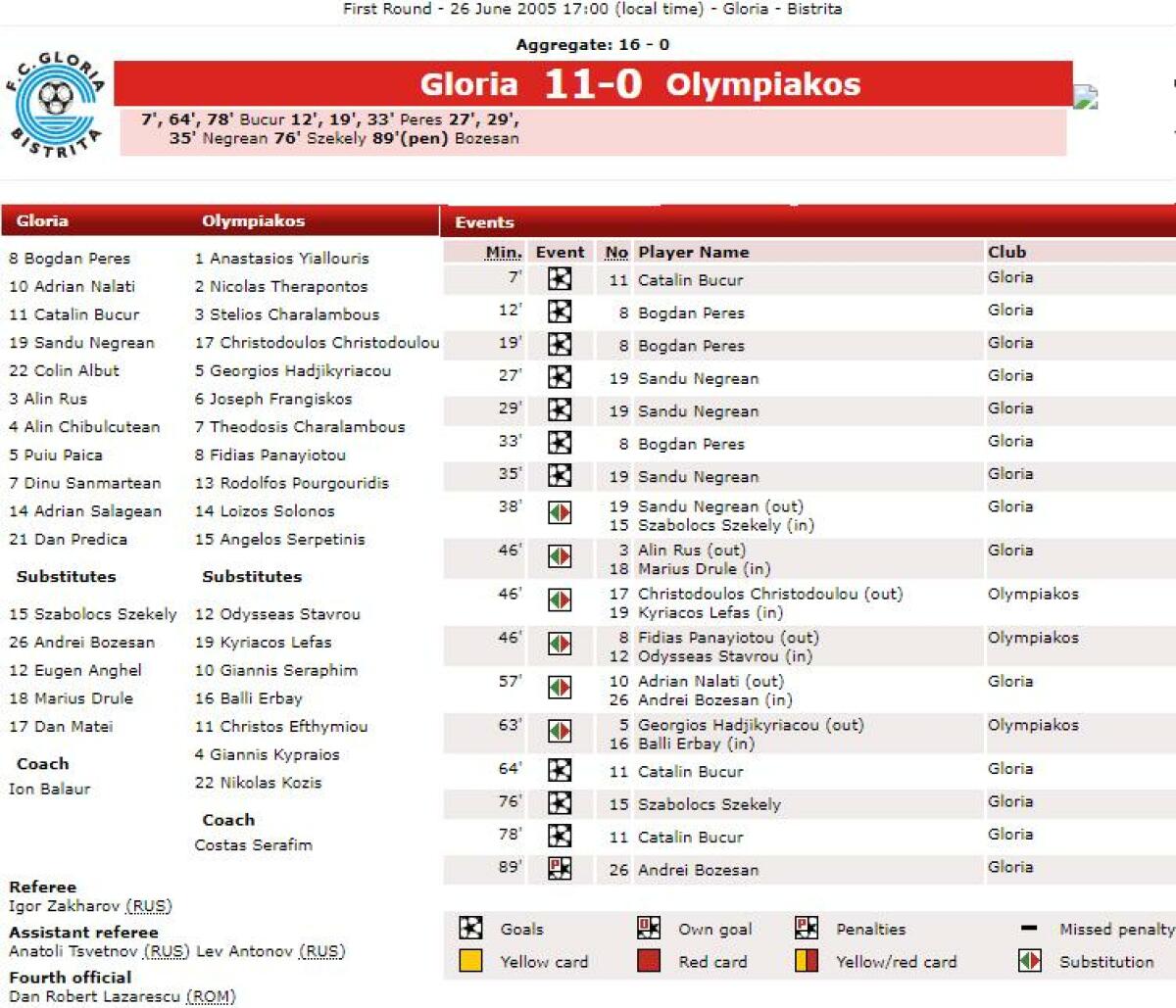 «Глория-1922» Бистрица - «Олимпиакос» Никосия - 11:0