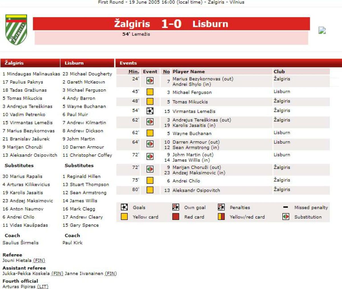 «Жальгирис» Вильнюс - «Лисберн Дистиллери» Лисберн - 1:0