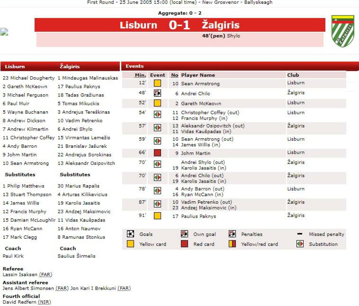 «Лисберн Дистиллери» Лисберн - «Жальгирис» Вильнюс - 0:1