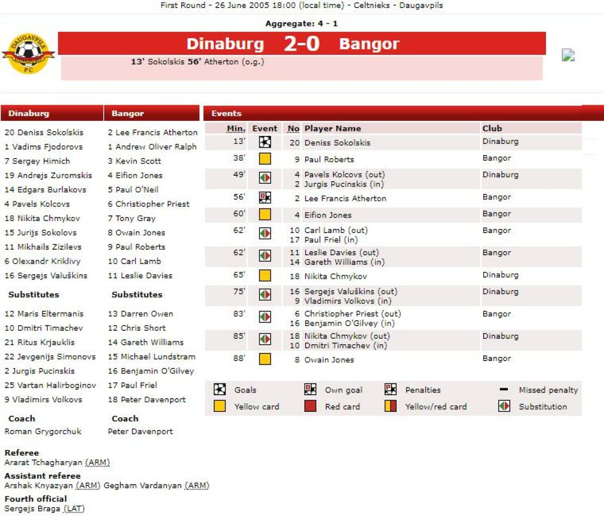 «Динабург» Даугавпилс - «Бангор Сити» Бангор - 2:0