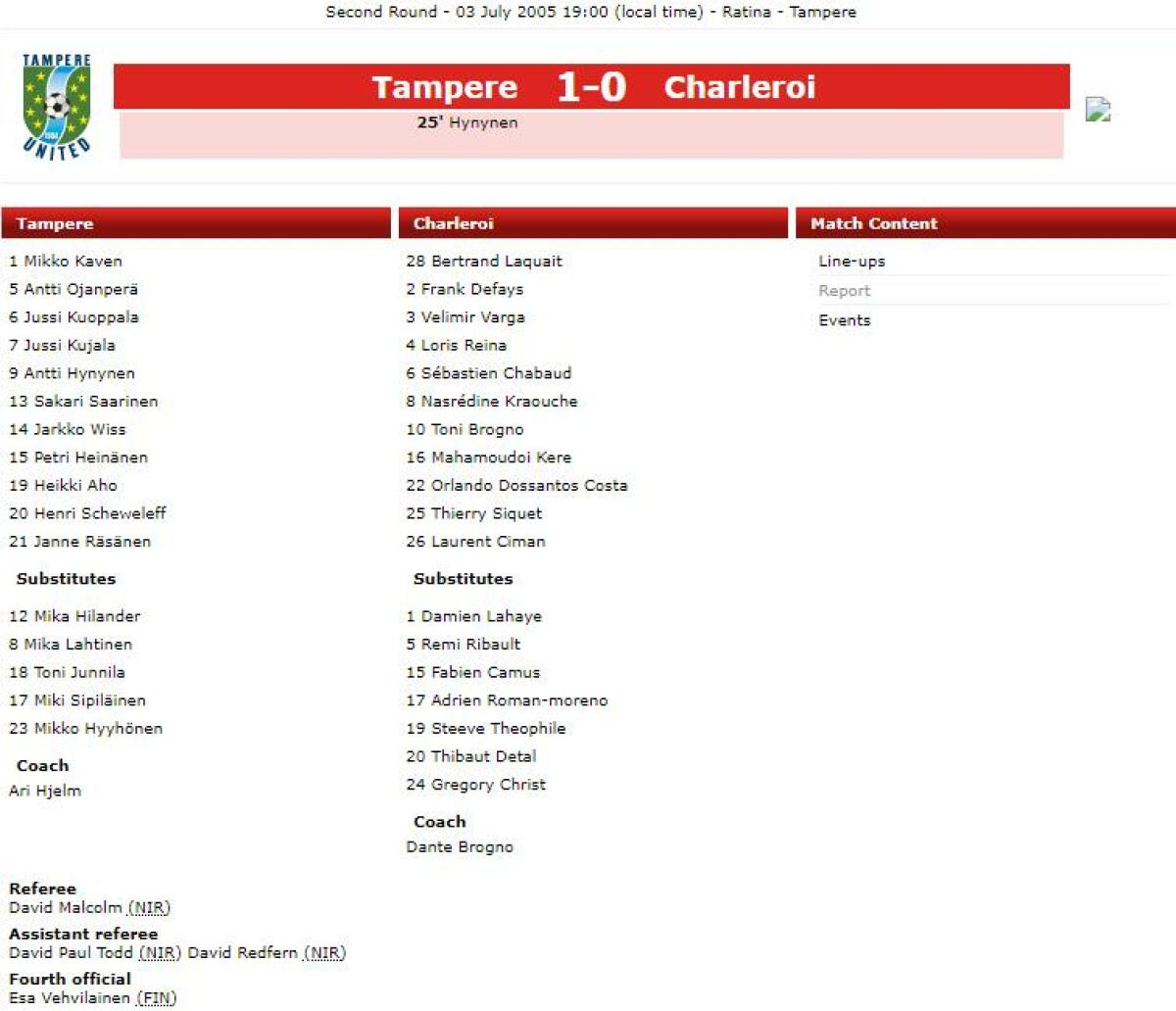 «Тампере Юнайтед» Тампере - «Шарлеруа» Шарлеруа - 1:0