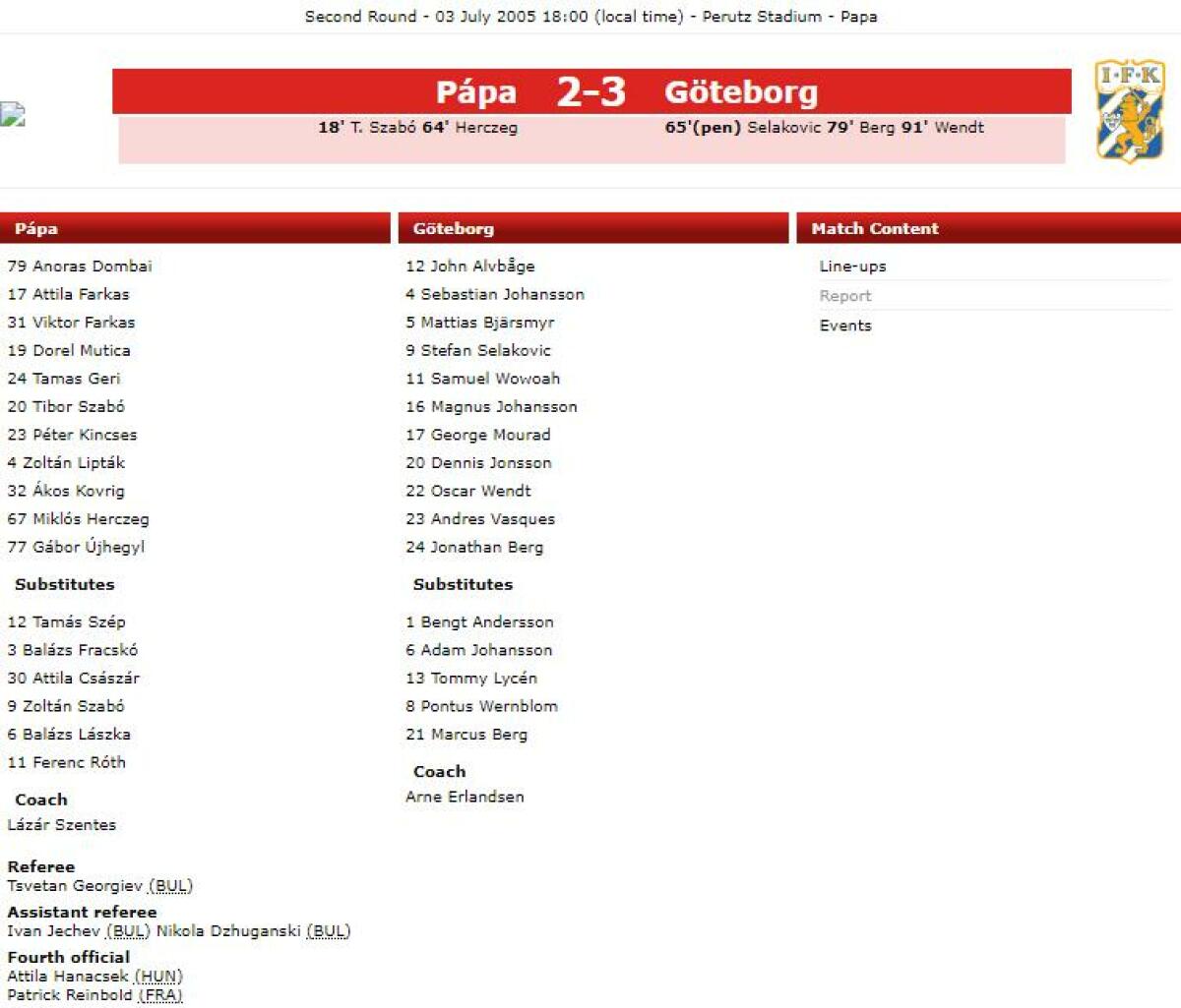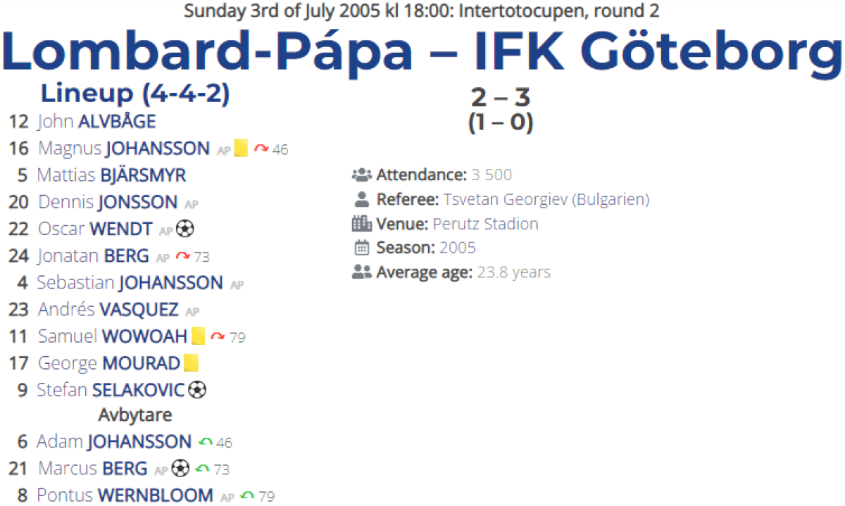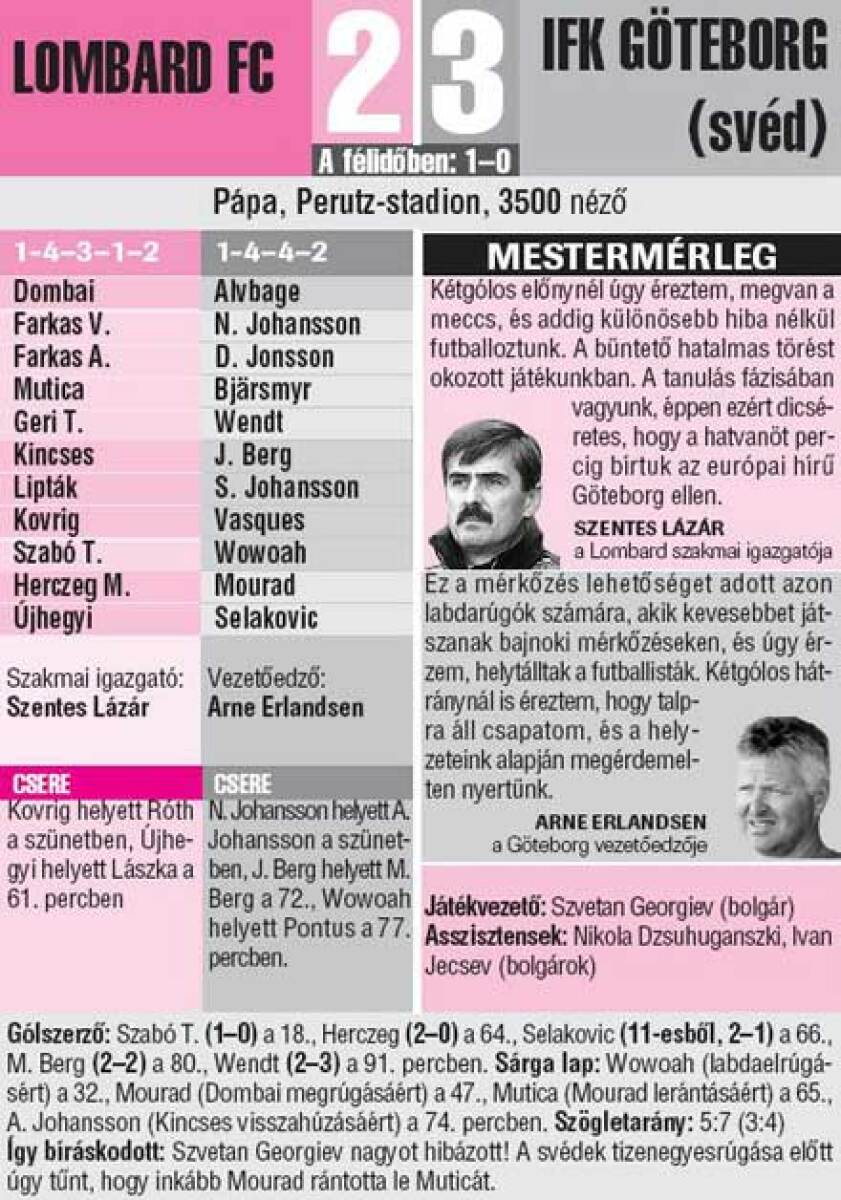 «Ломбард Папа Термаль» Папа - «Гётеборг» Гётеборг - 2:3