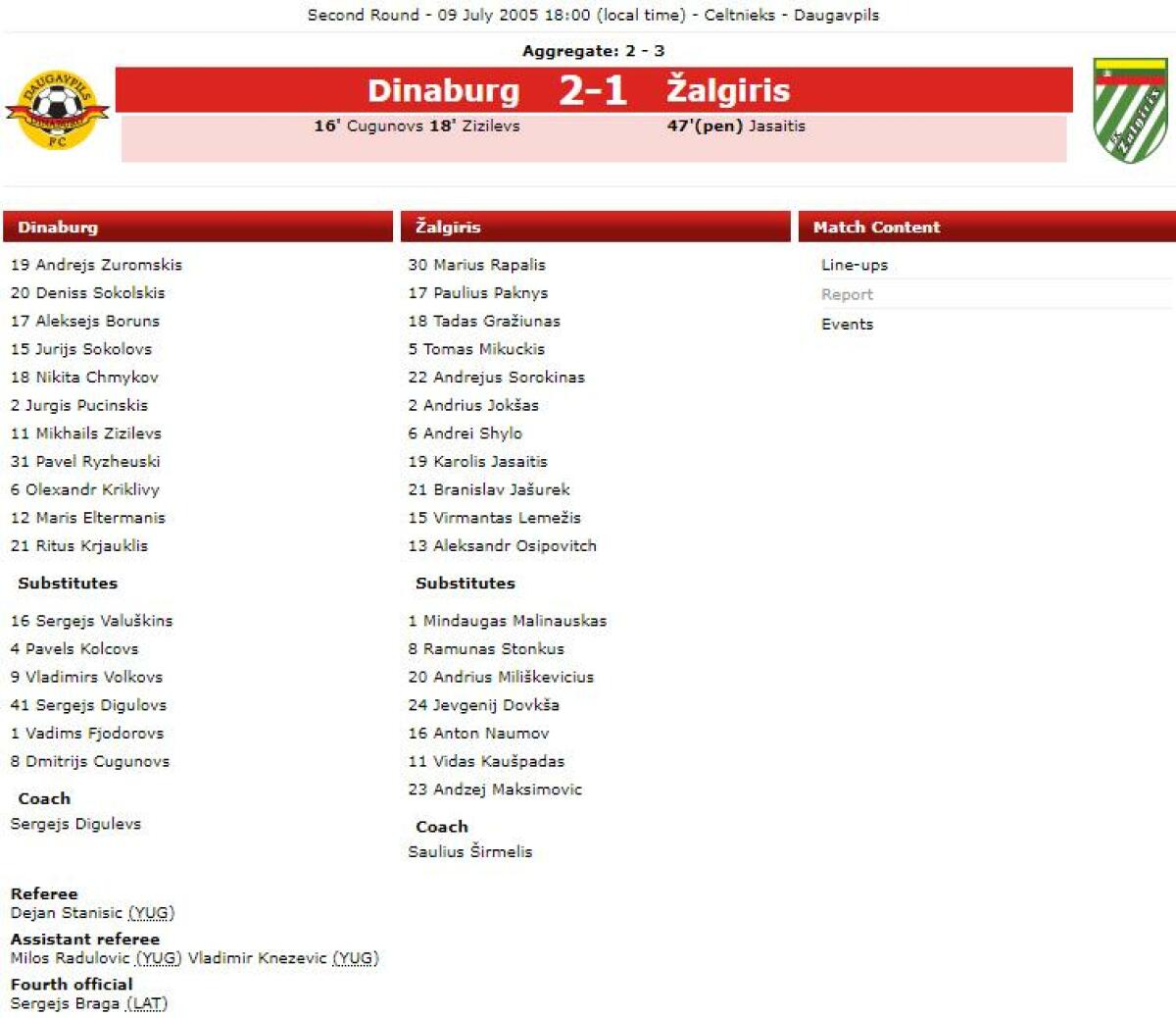 «Динабург» Даугавпилс - «Жальгирис» Вильнюс - 2:1