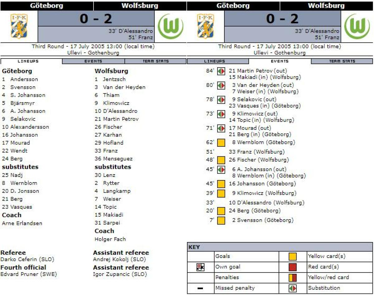 «Гётеборг» Гётеборг - «Вольфсбург» Вольфсбург - 0:2
