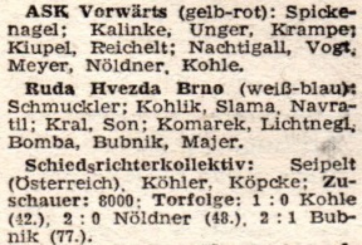 «Форвёртс» Берлин - «Руда Гвезда» Брно - 2:1