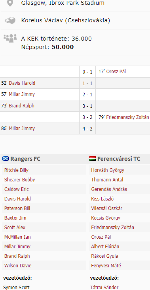 «Рейнджерс» Глазго - «Ференцварош» Будапешт - 4:2