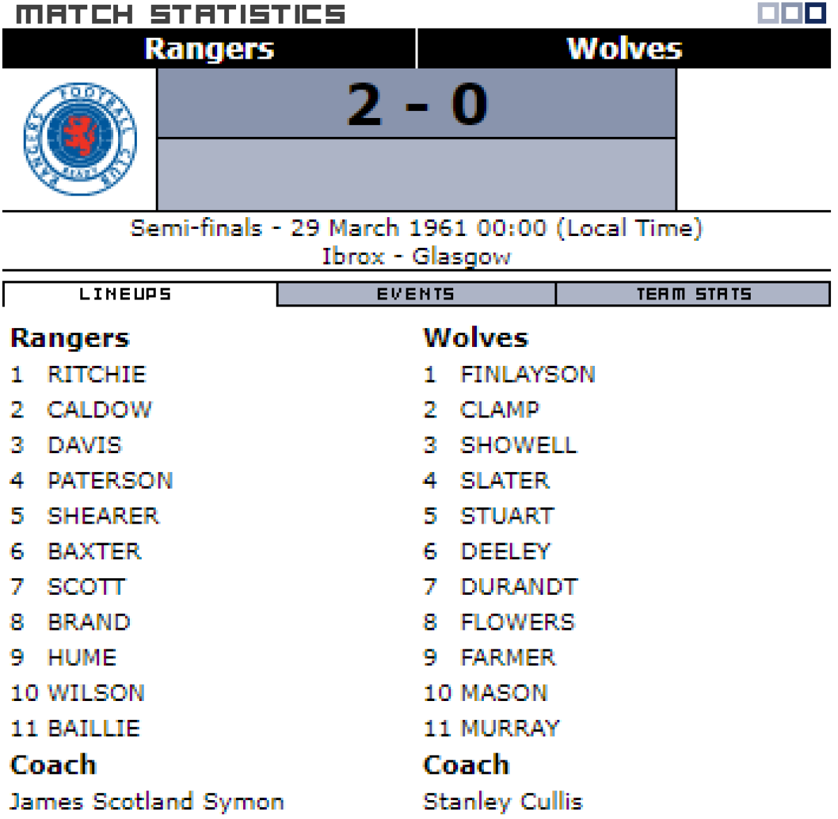 «Рейнджерс» Глазго - «Вулверхемптон Уондерерс» Вулверхемптон - 2:0