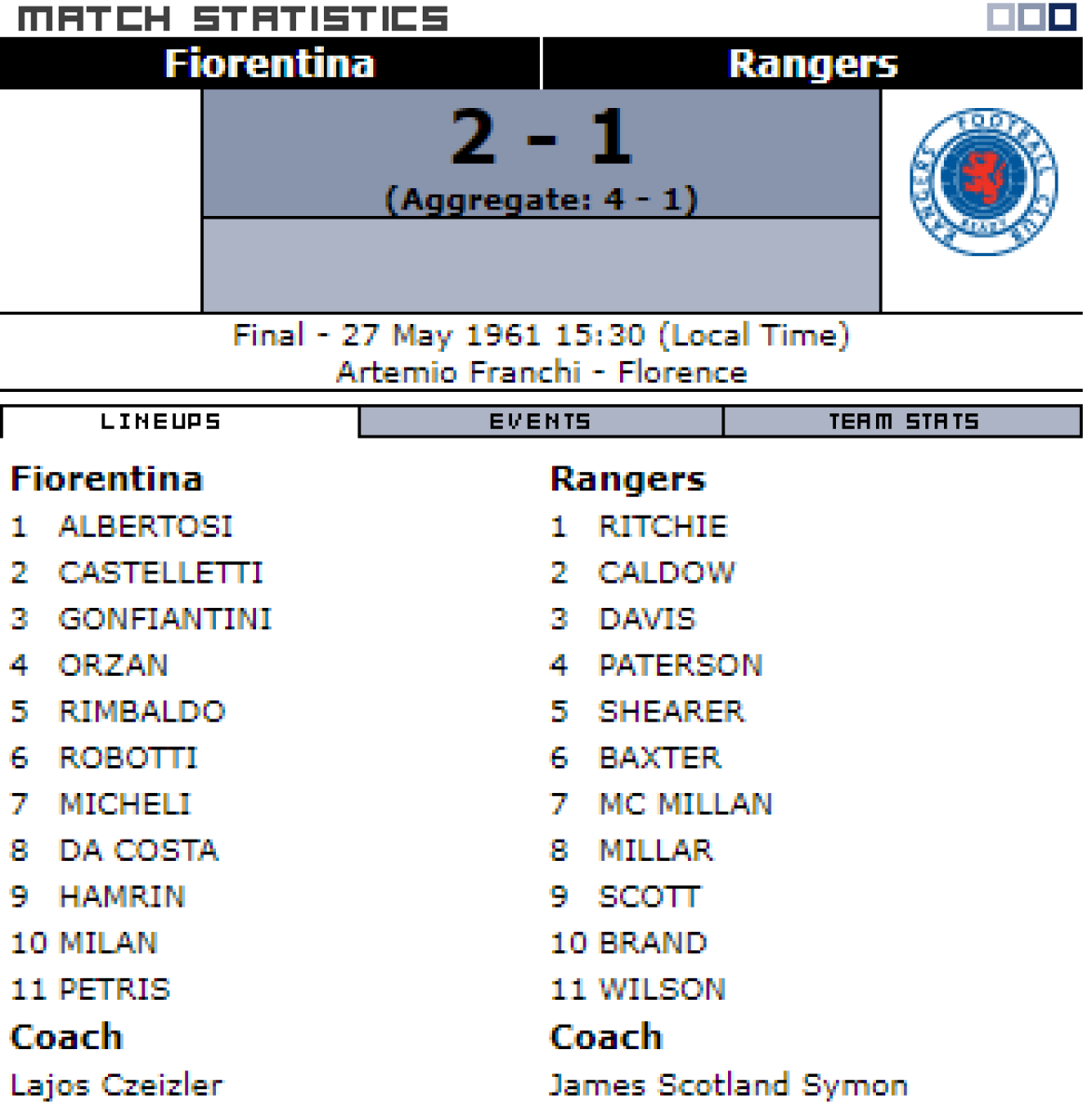 «Фиорентина» Флоренция - «Рейнджерс» Глазго - 2:1