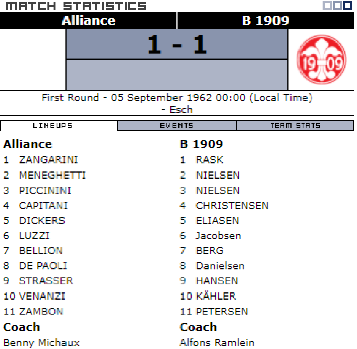 «Альянс» Дюделанж - Б-1909 Оденсе - 1:1