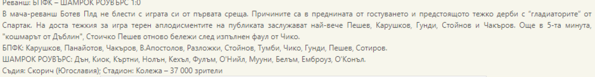 «Ботев» Пловдив - «Шемрок Роверс» Дублин - 1:0
