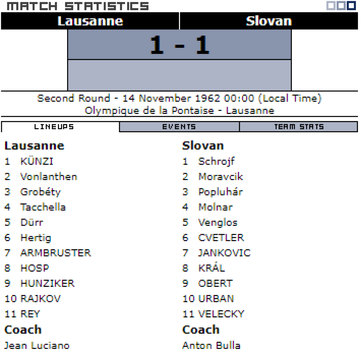 «Лозанна-Спортс» Лозанна - «Слован» Братислава - 1:1