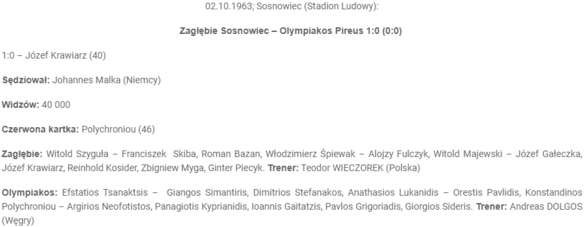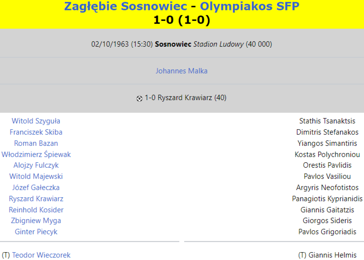 «Заглембе» Сосновец - «Олимпиакос» Пирей - 1:0