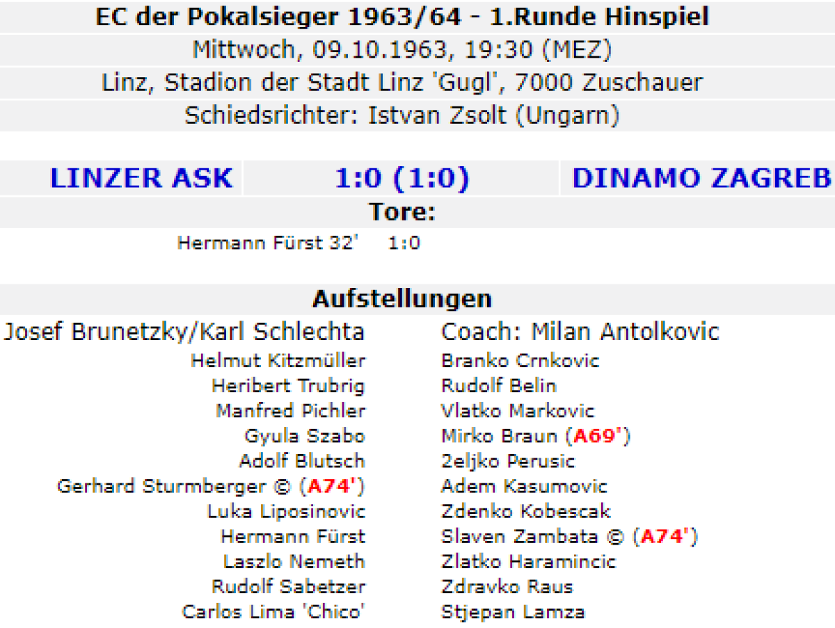 «Линцер АСК» Линц - «Динамо» Загреб - 1:0