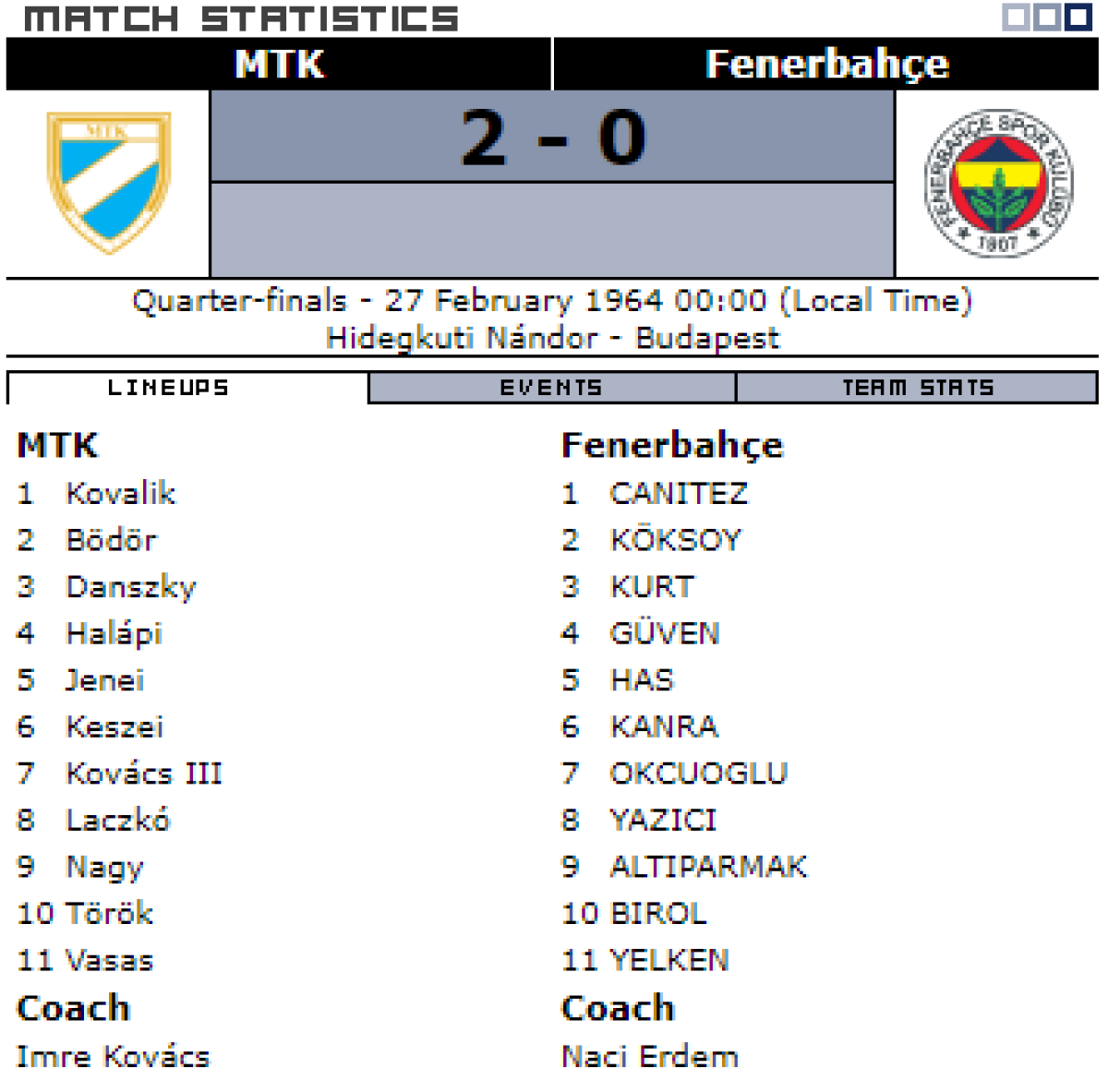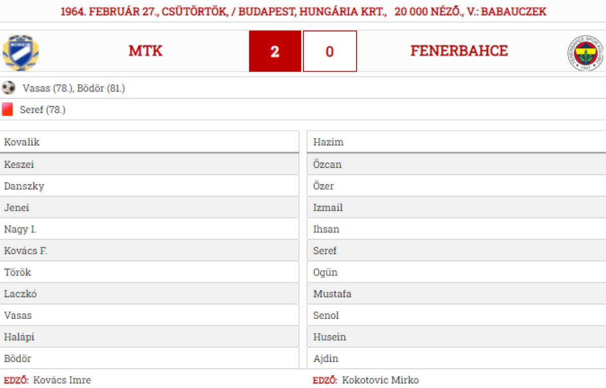 МТК Будапешт - «Фенербахче» Стамбул - 2:0