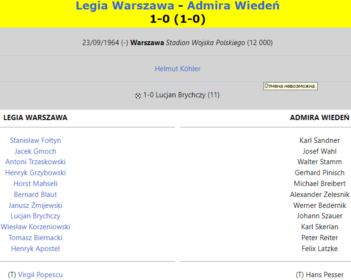 «ВКС Легия» Варшава - «Адмира-НЁ» Вена - 1:0