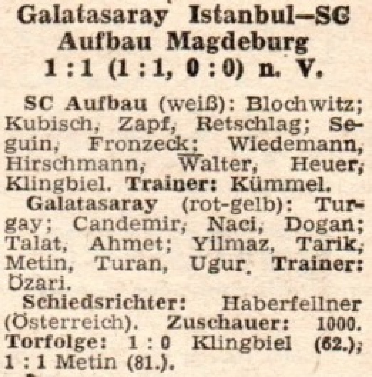 «Галатасарай» Стамбул - «Ауфбау» Магдебург - 1:1
