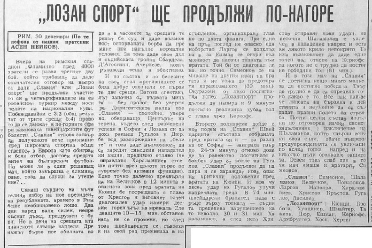 «Лозанна-Спортс» Лозанна - «Славия» София - 3:2