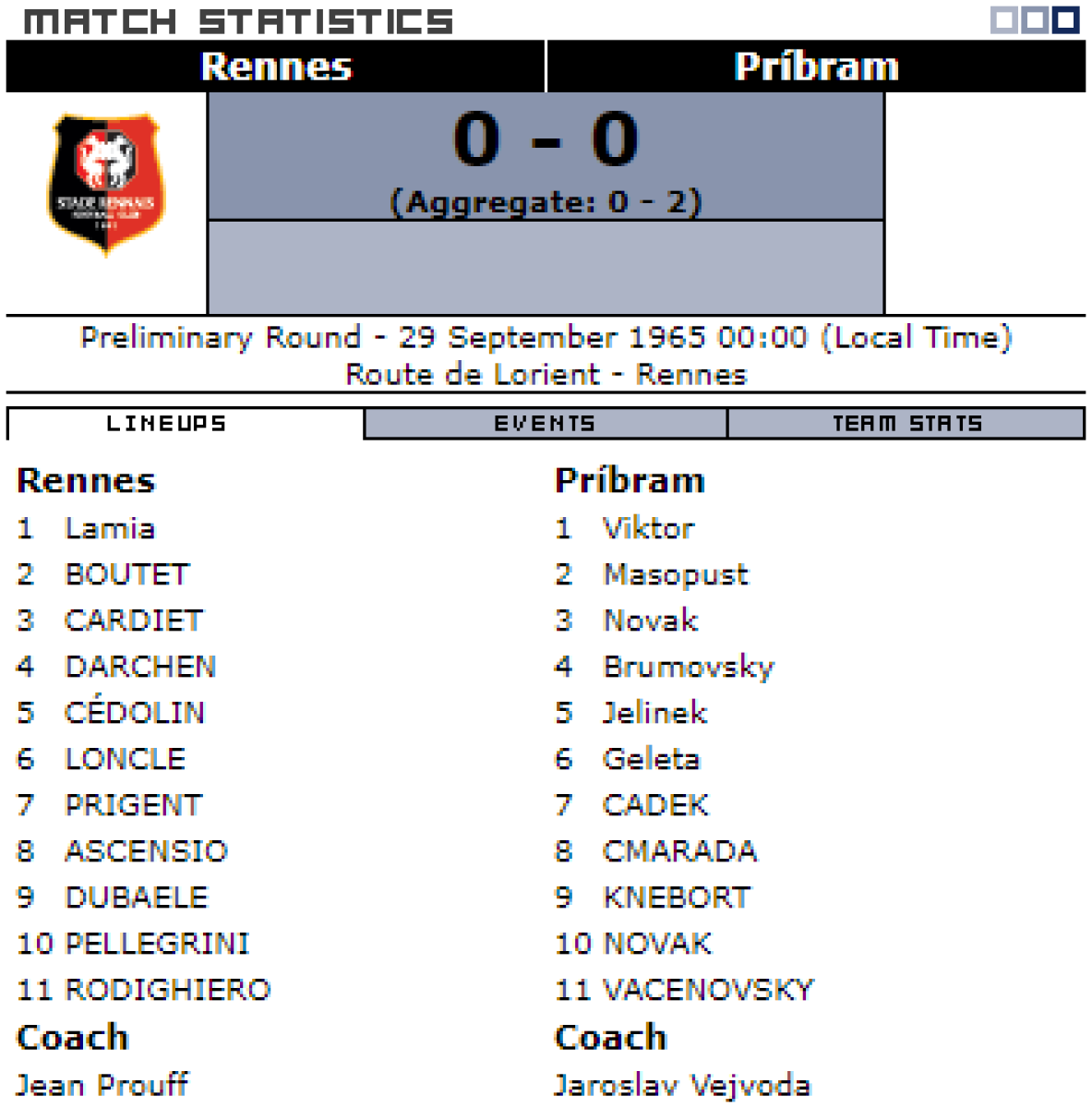 «Стад Ренн Университе» Ренн - «Дукла» Прага - 0:0