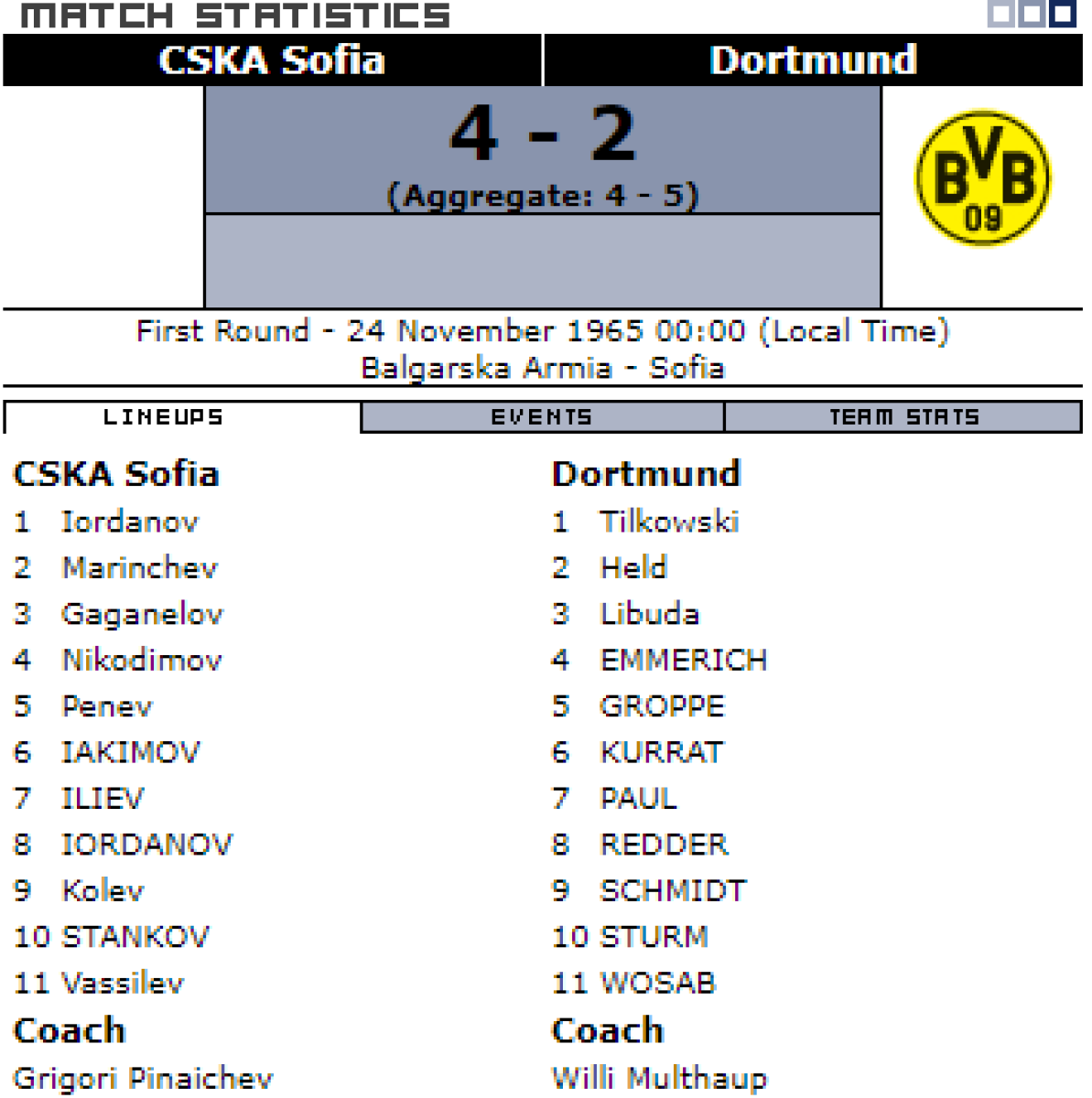 «ЦСКА Червено Знаме» София - «Боруссия-09» Дортмунд - 4:2