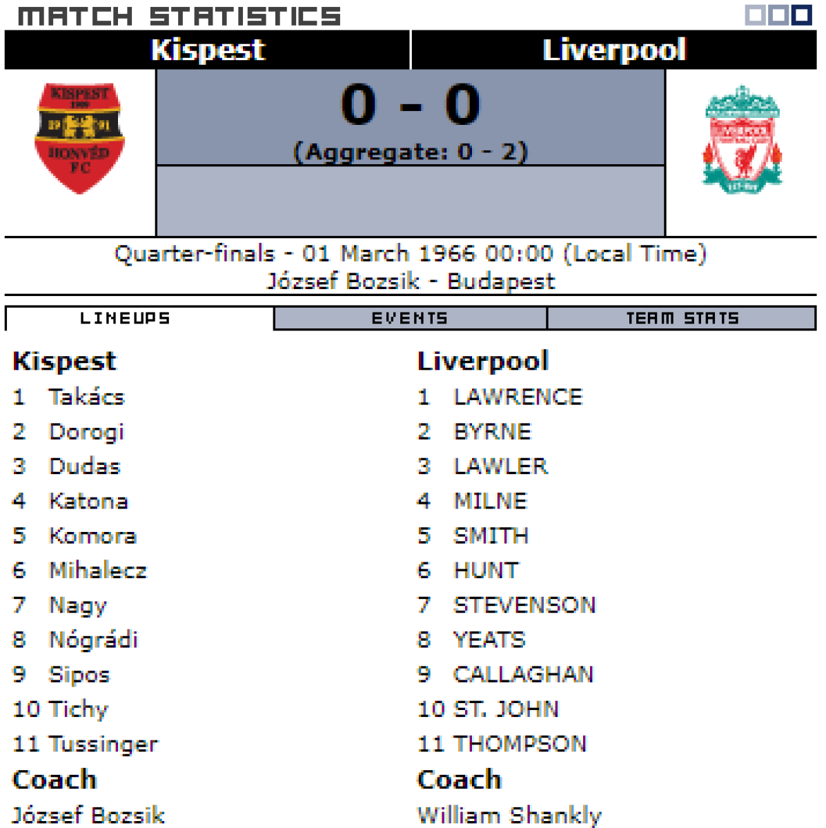«Гонвед» Будапешт - «Ливерпуль» Ливерпуль - 0:0