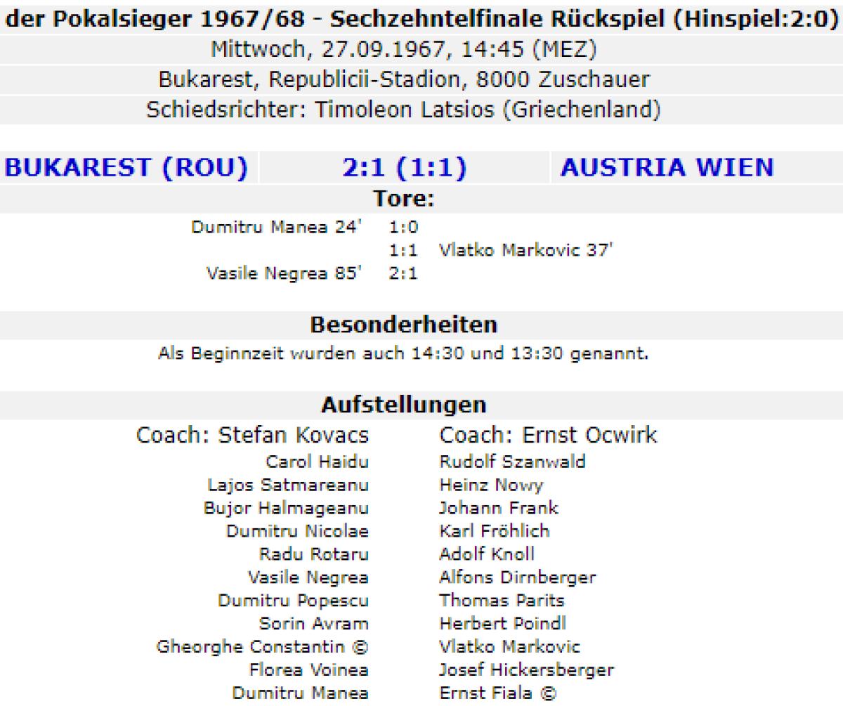 «Стяуа» Бухарест - «Аустрия» Вена - 2:1