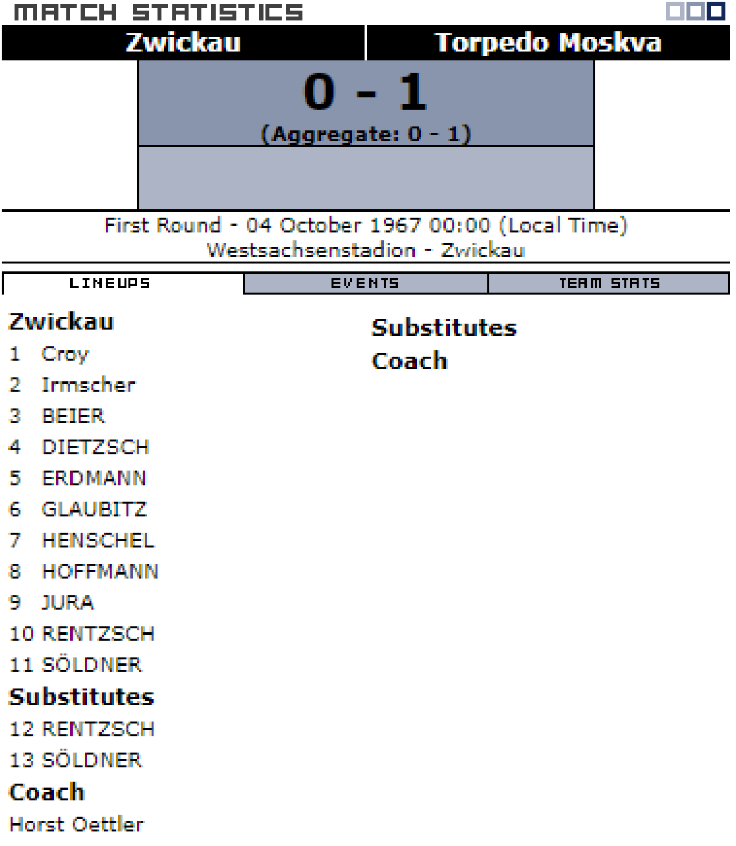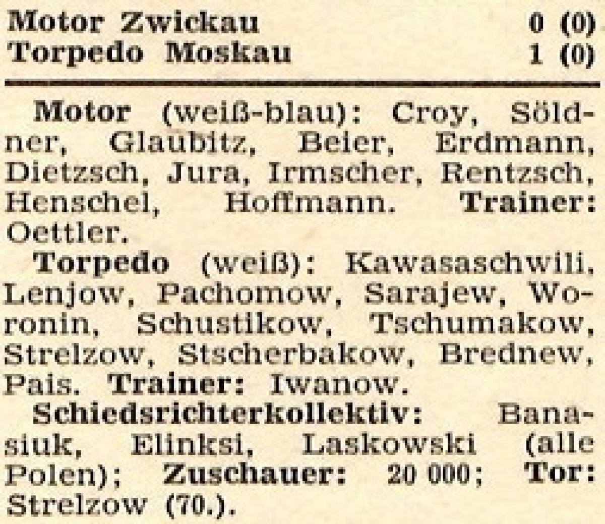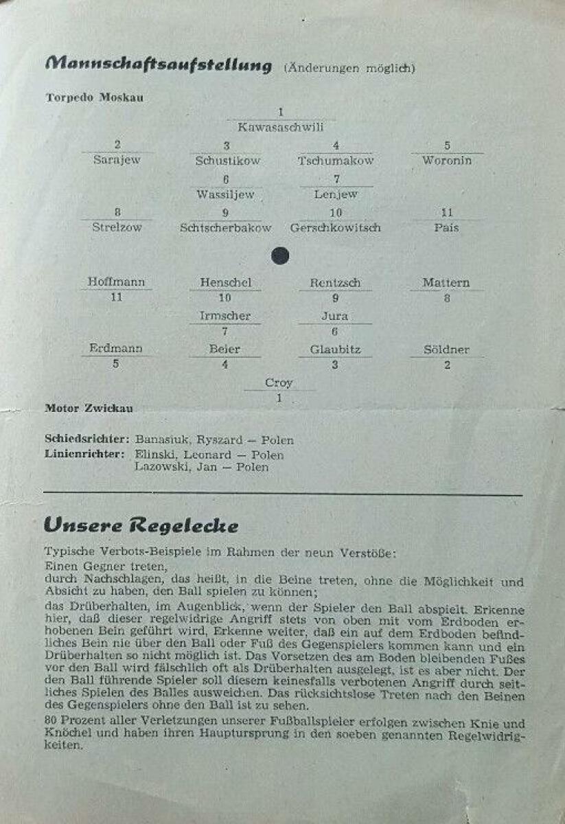 «Мотор» Цвиккау - «Торпедо» Москва - 0:1