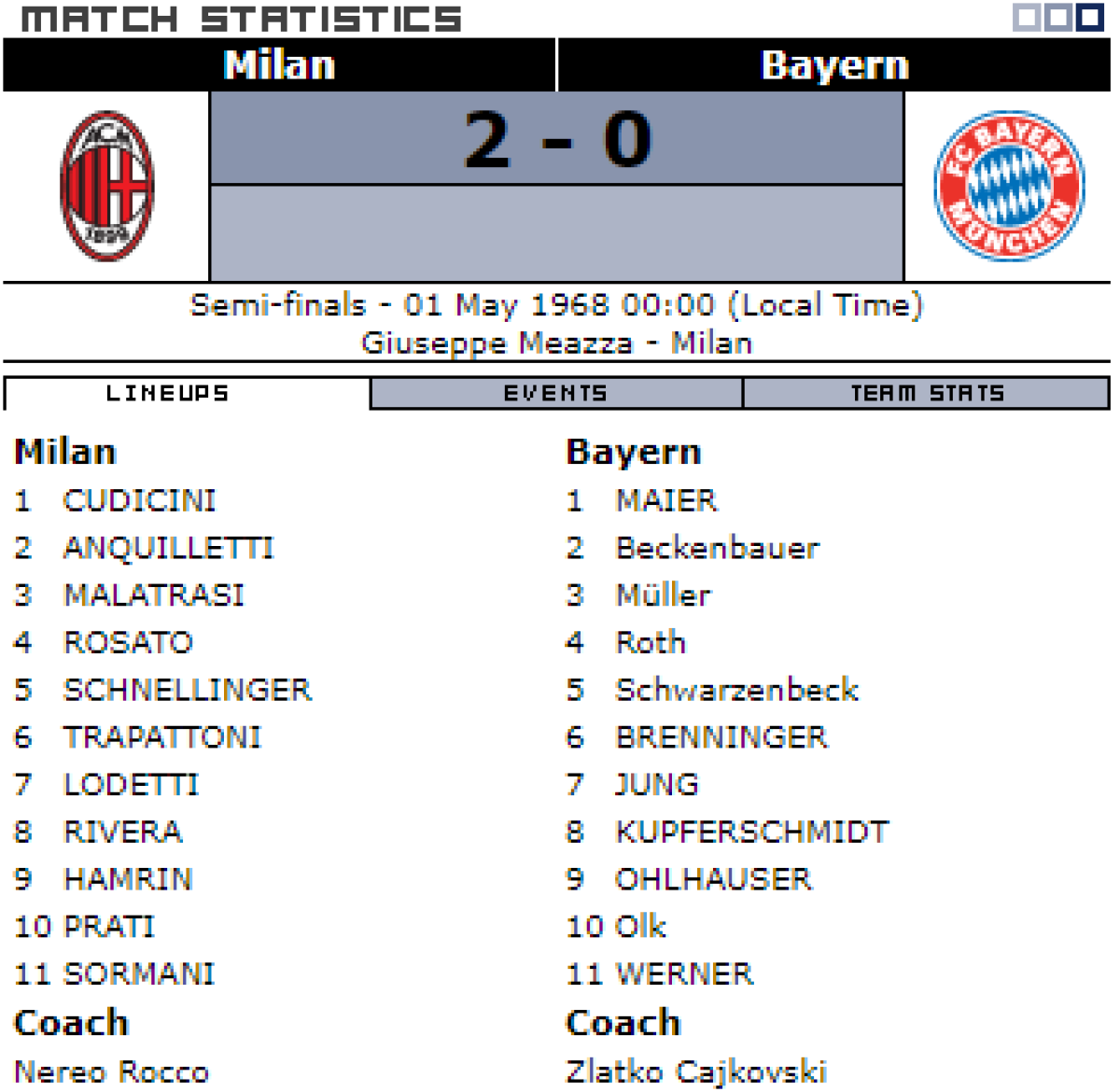 «Милан» Милан - «Бавария» Мюнхен - 2:0