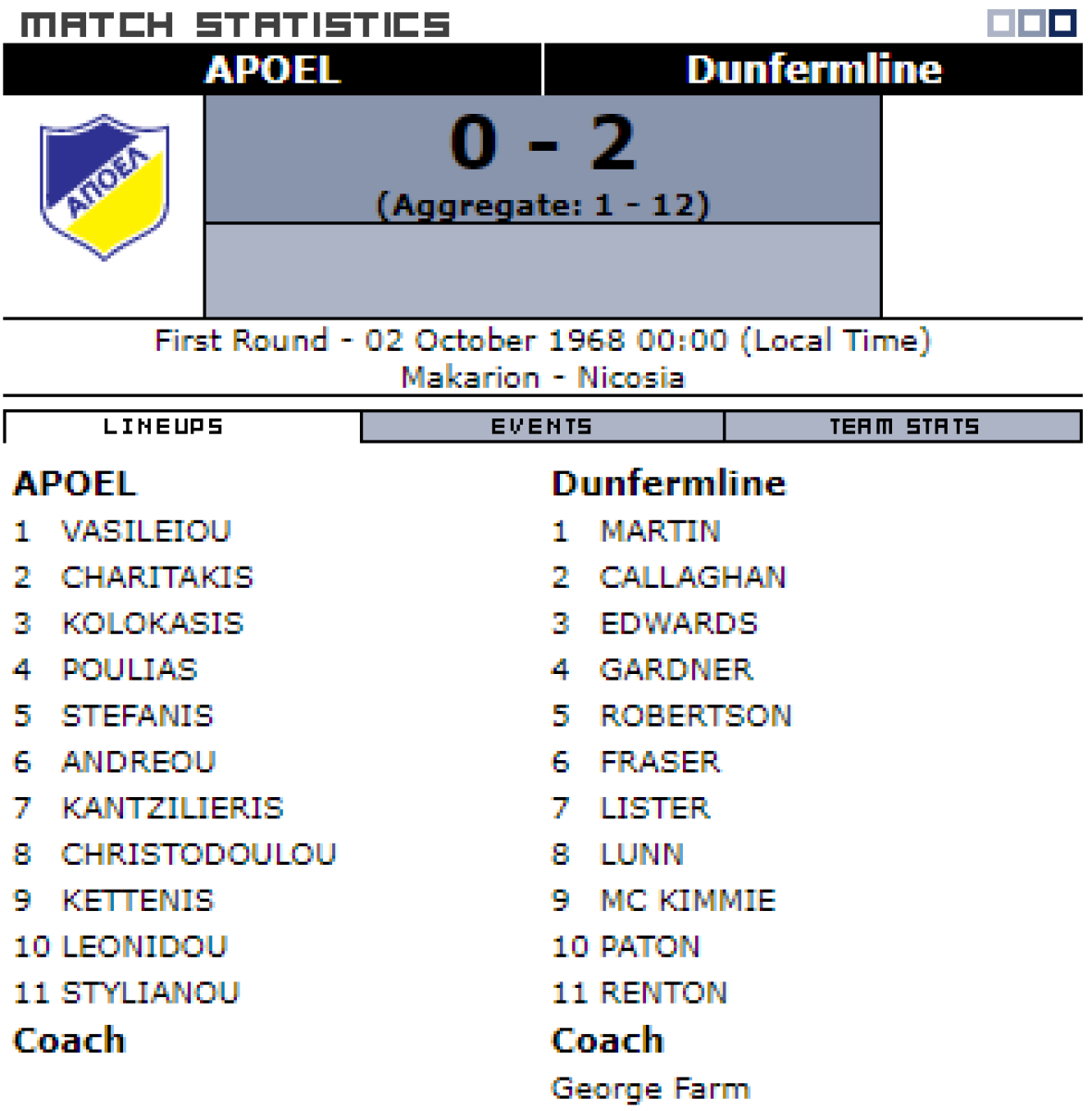 АПОЭЛ Никосия - «Данфермлин Атлетик» Данфермлин - 0:2