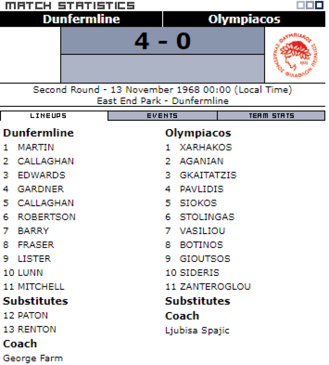 «Данфермлин Атлетик» Данфермлин - «Олимпиакос» Пирей - 4:0