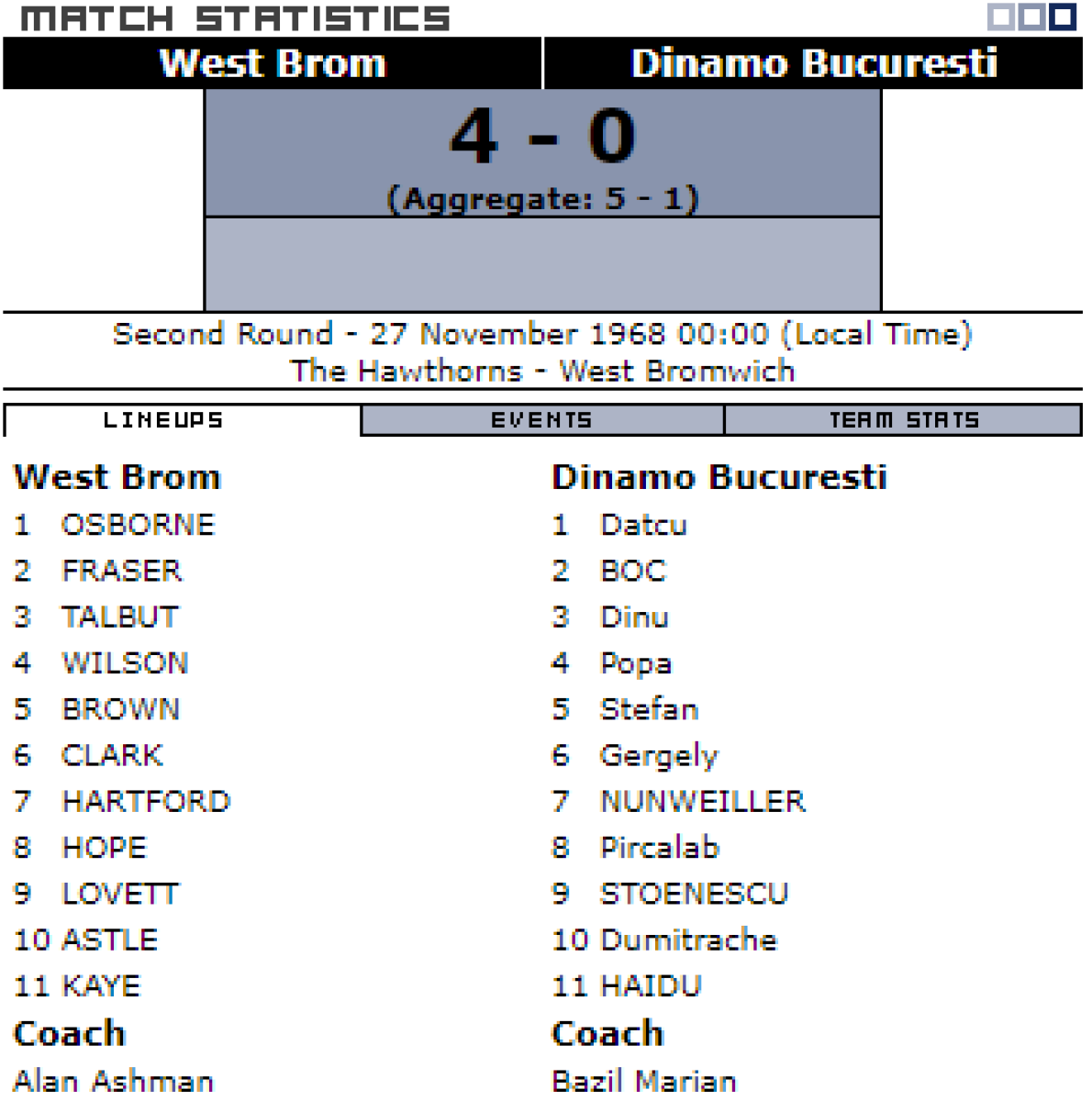 «Вест Бромвич Альбион» Уэст-Бромидж - «Динамо» Бухарест - 4:0