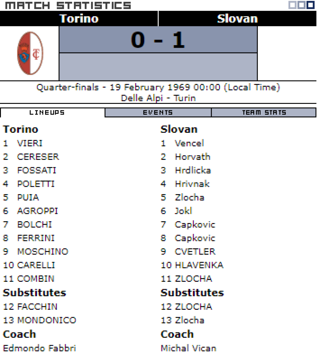«Торино» Турин - «Слован» Братислава - 0:1