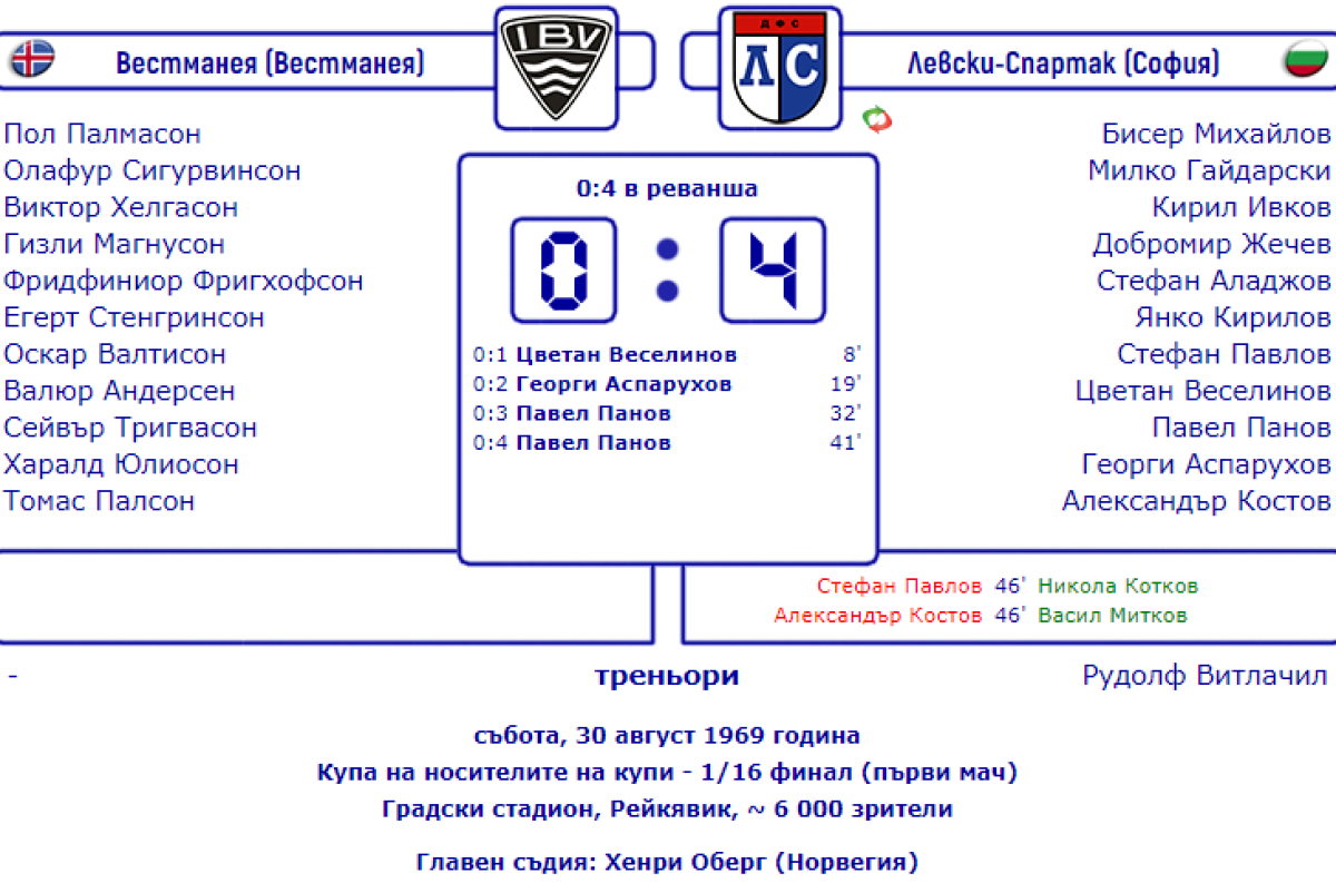 «Вестманнаэйяр» Вестманнаэйяр - «Левски-Спартак» София - 0:4