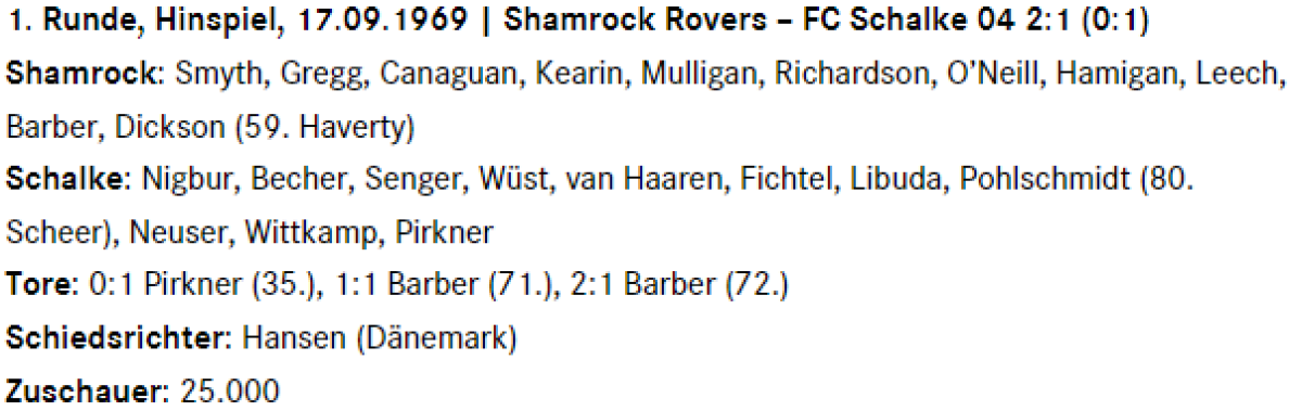 «Шемрок Роверс» Дублин - «Шальке-04» Гельзенкирхен - 2:1