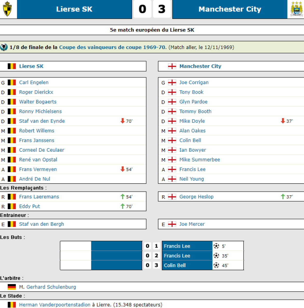 «Льерше» Лир - «Манчестер Сити» Манчестер - 0:3