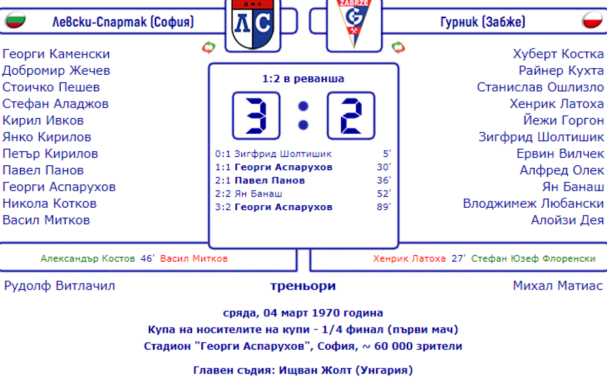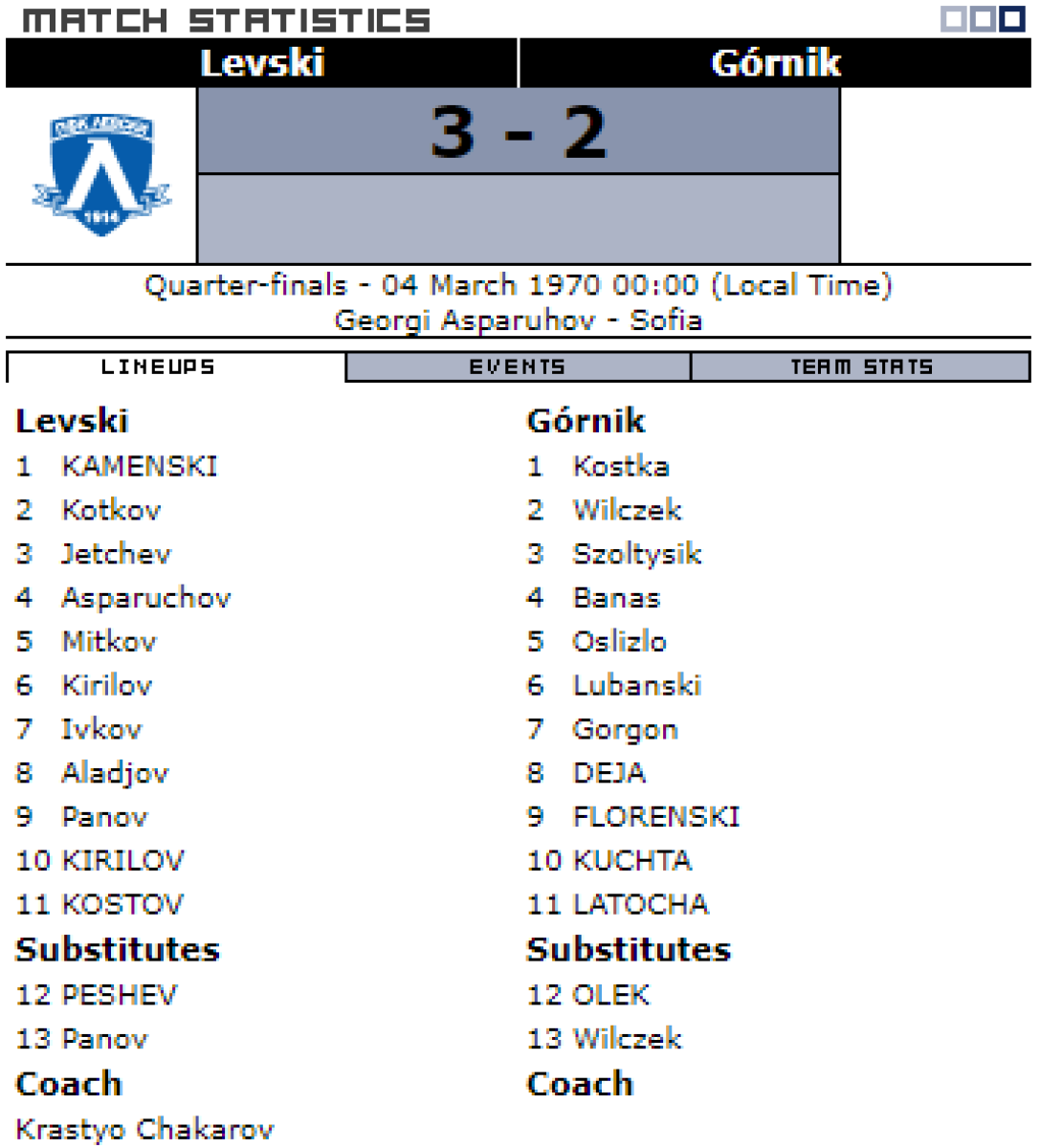 «Левски-Спартак» София - «Гурник» Забже - 3:2