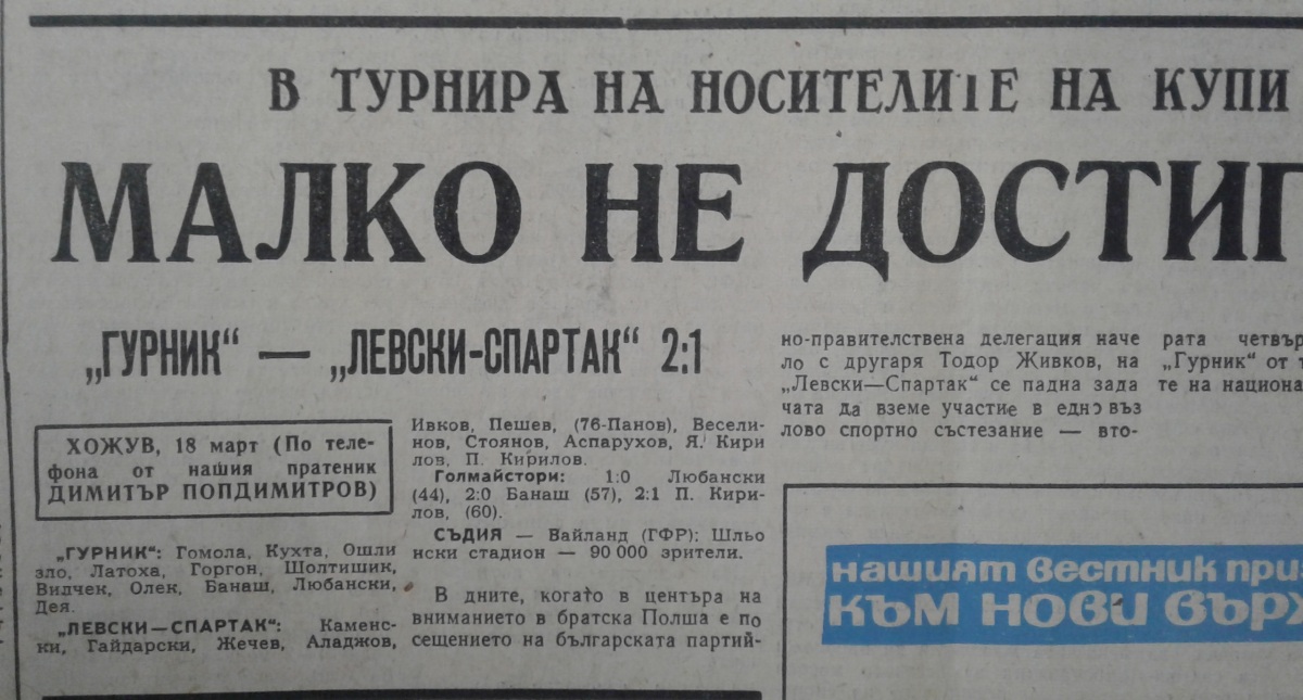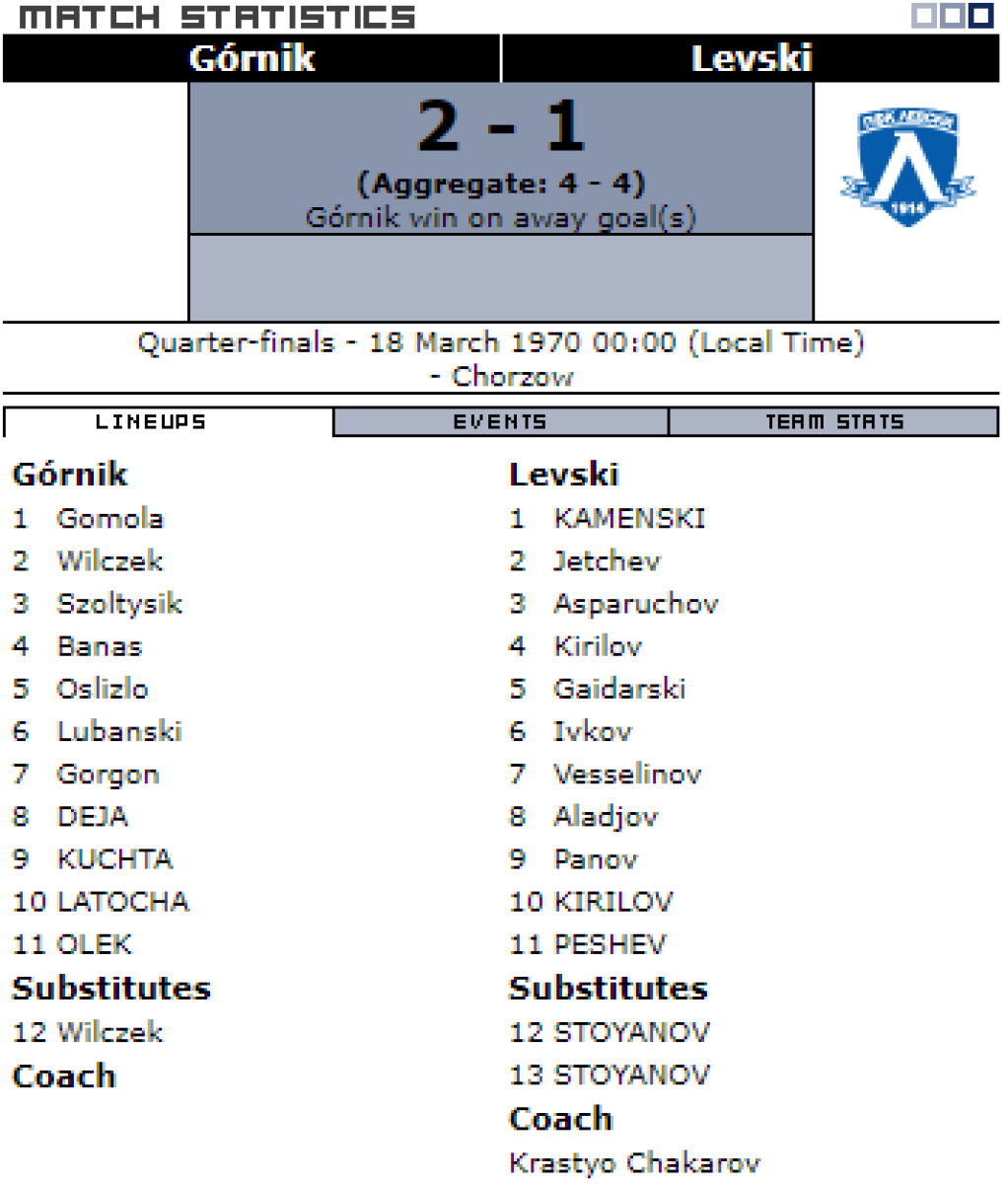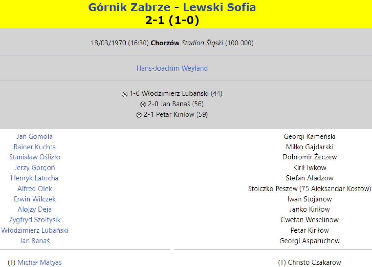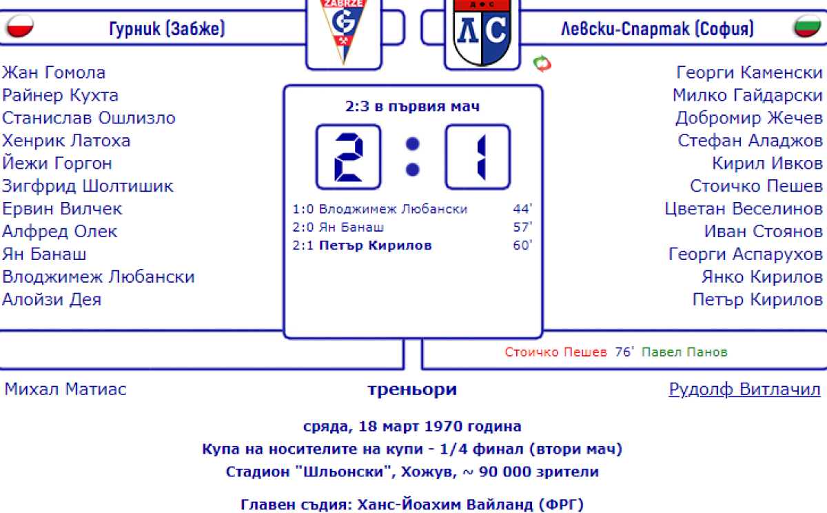 «Гурник» Забже - «Левски-Спартак» София - 2:1
