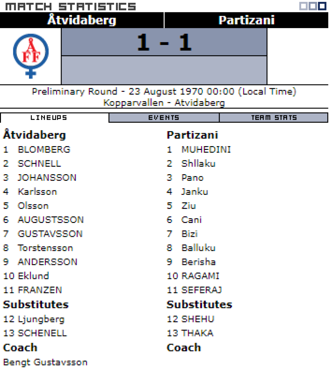 «Отвидаберг» Отвидаберг - «Партизани» Тирана - 1:1