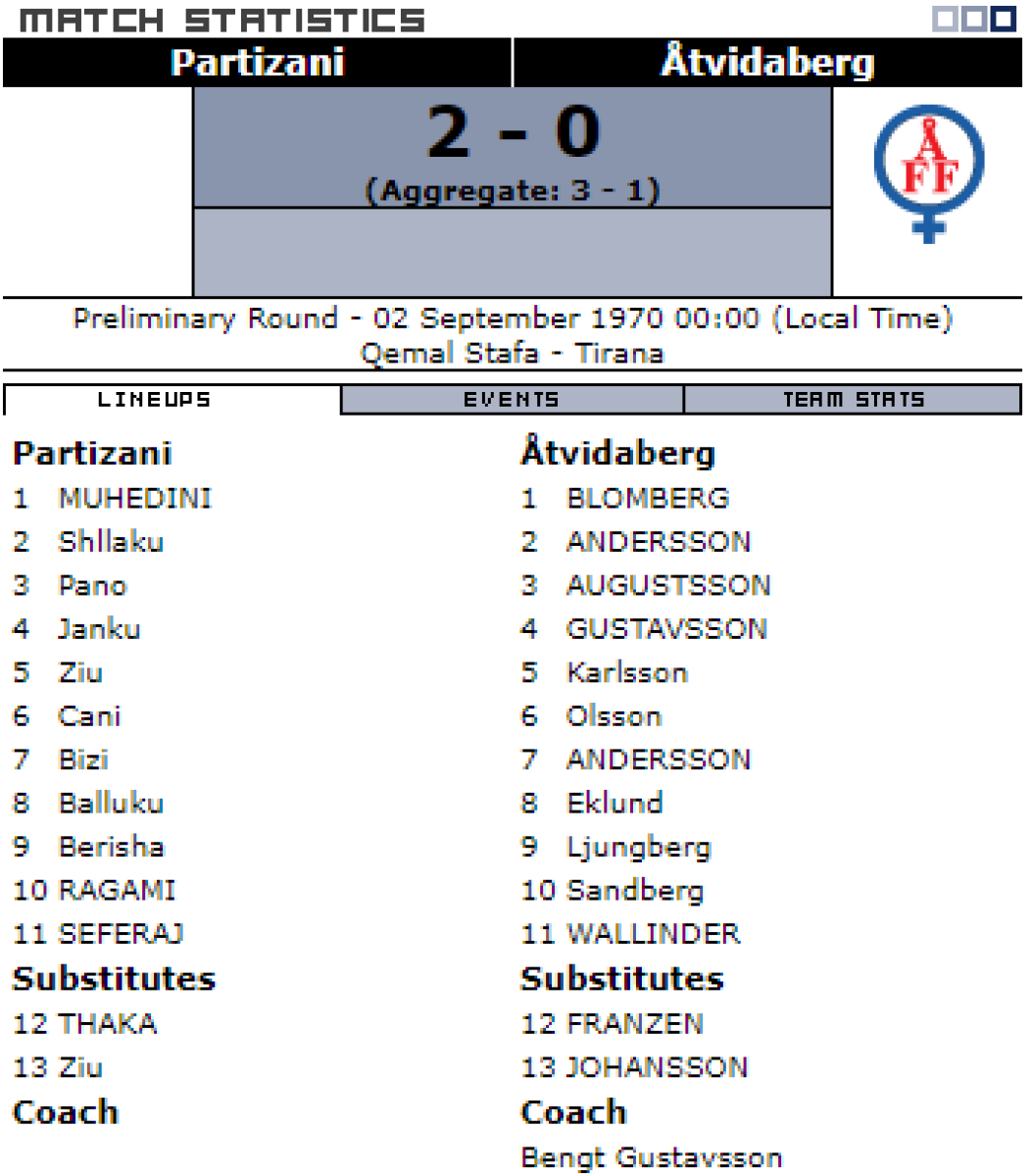 «Партизани» Тирана - «Отвидаберг» Отвидаберг - 2:0