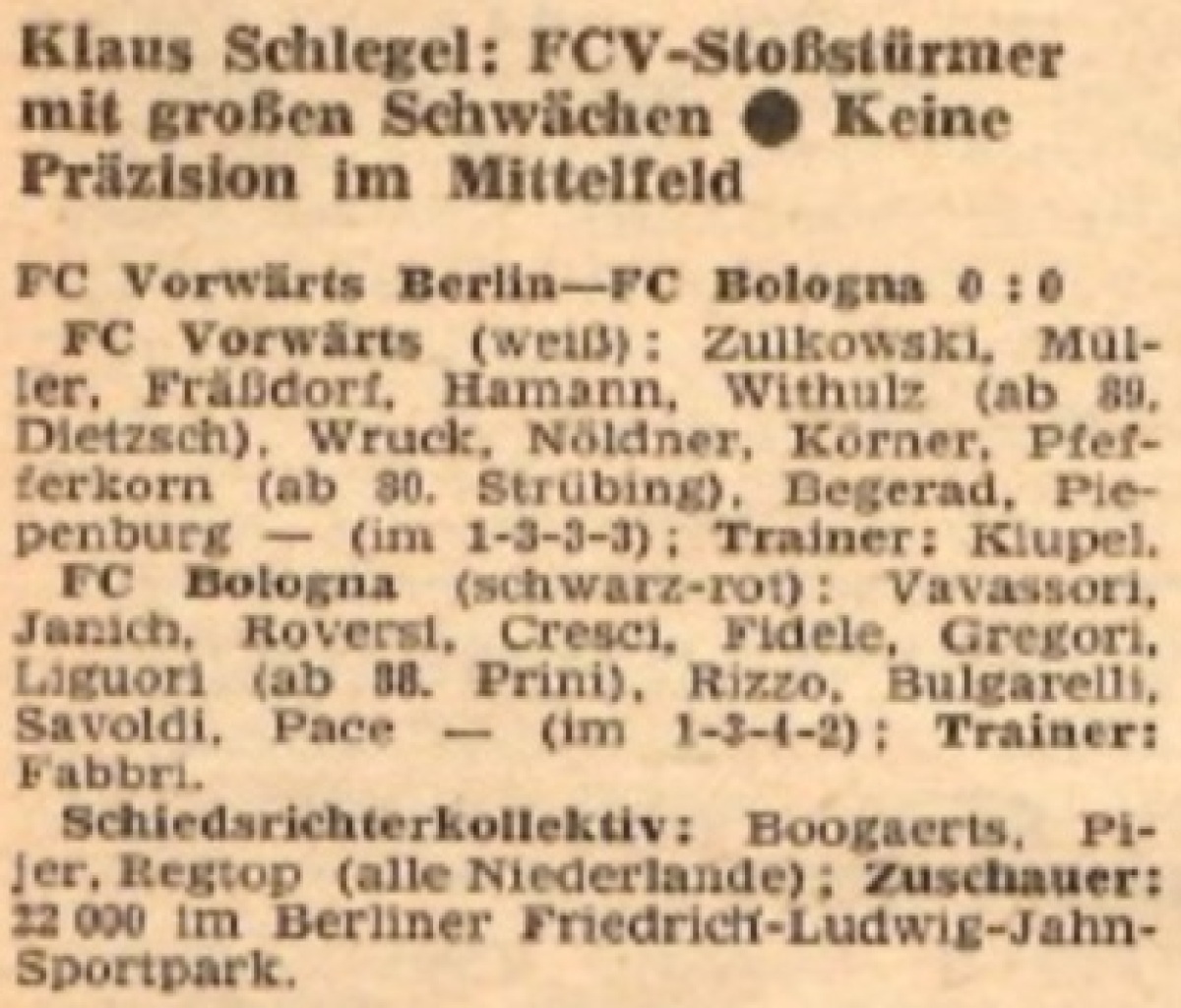 «Форвёртс» Берлин - «Болонья» Болонья - 0:0