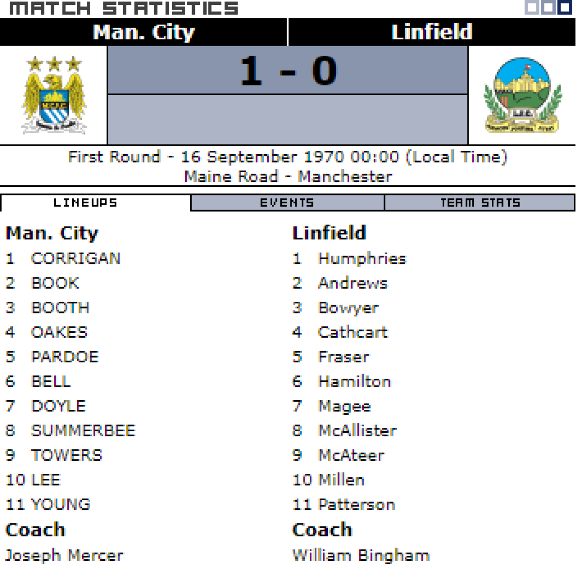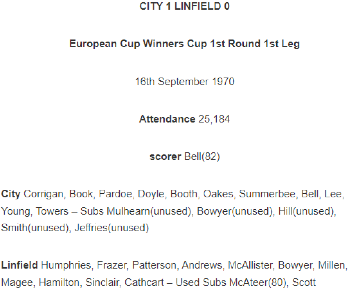 «Манчестер Сити» Манчестер - «Линфилд» Белфаст - 1:0